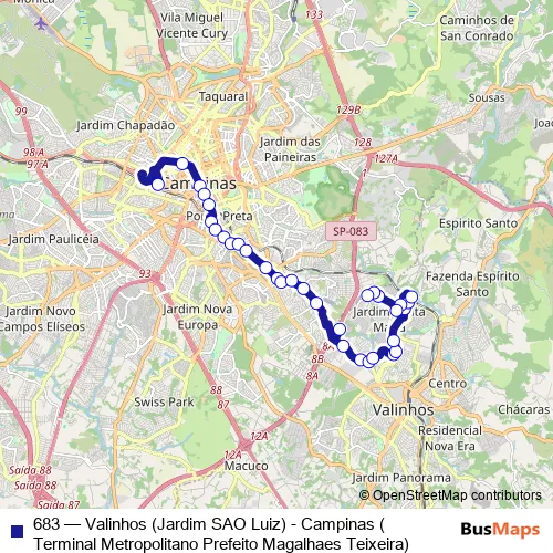 Bus 683 - Valinhos (Jardim SAO Luiz) - Campinas (Terminal Metropolitano Prefeito Magalhaes Teixeira) in Vinhedo: Stops & Timetable