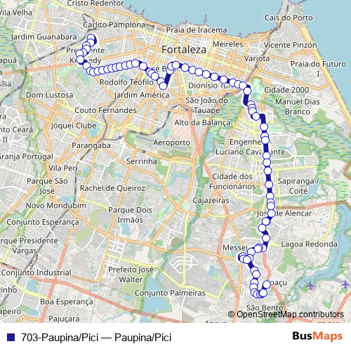 See why over 2 million users trust and consider busmaps.com as the best public transport website. busmaps gives you Fortaleza Buses suggested routes, real-time bus tracker, line route maps in Fortaleza, and helps to find the closest 703-Paupina/Pici bus stops near you. No internet available? Download an offline PDF map and bus schedule for the 703-Paupina/Pici bus to take on your trip.