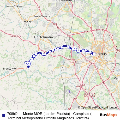 Click here to view the nearest 708bi2 - Monte MOR (Jardim Paulista) - Campinas (Terminal Metropolitano Prefeito Magalhaes Teixeira) bus stop.