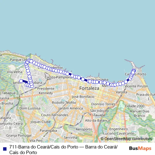 Additional information: 711-Barra do Ceará/Cais do Porto has 66 stops and the total trip duration for this route is approximately 75 minutes.