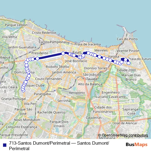 See why over 2 million users trust and consider busmaps.com as the best public transport website. busmaps gives you Fortaleza Buses suggested routes, real-time bus tracker, line route maps in Fortaleza, and helps to find the closest 713-Santos Dumont/Perimetral bus stops near you. No internet available? Download an offline PDF map and bus schedule for the 713-Santos Dumont/Perimetral bus to take on your trip.