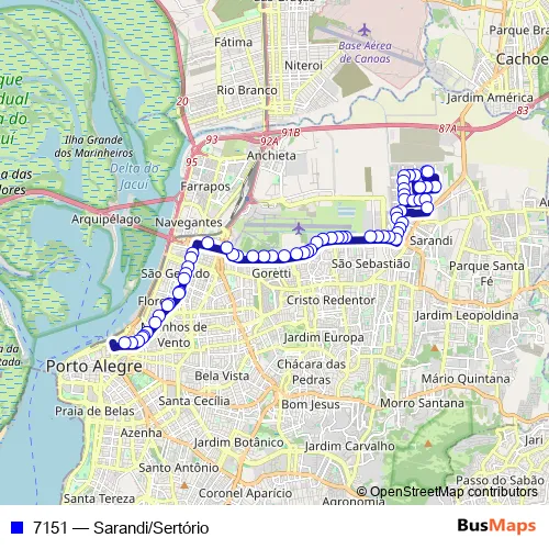 Bus 7151 - Sarandi/Sertório in Porto Alegre: Stops & Timetable