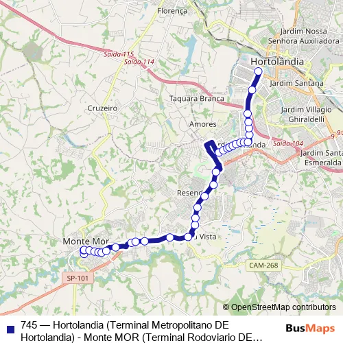 Click here to view the nearest 745 - Hortolandia (Terminal Metropolitano DE Hortolandia) - Monte MOR (Terminal Rodoviario DE Monte Mor) bus stop.