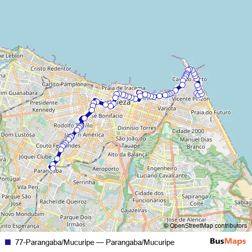 Additional information: 77-Parangaba/Mucuripe has 60 stops and the total trip duration for this route is approximately 84 minutes.