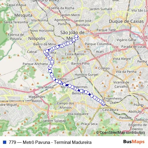 See why over 2 million users trust and consider busmaps.com as the best public transport website. busmaps gives you Nova Iguacu Buses suggested routes, real-time bus tracker, line route maps in Nova Iguacu, and helps to find the closest 779 bus stops near you. No internet available? Download an offline PDF map and bus schedule for the 779 bus to take on your trip.