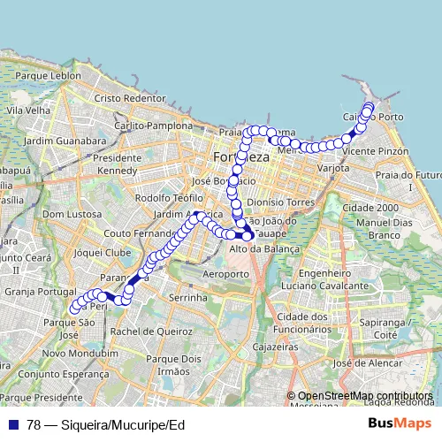 See why over 2 million users trust and consider busmaps.com as the best public transport website. busmaps gives you Fortaleza Buses suggested routes, real-time bus tracker, line route maps in Fortaleza, and helps to find the closest 78 bus stops near you. No internet available? Download an offline PDF map and bus schedule for the 78 bus to take on your trip.