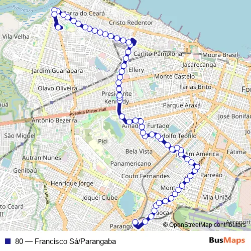 See why over 2 million users trust and consider busmaps.com as the best public transport website. busmaps gives you Fortaleza Buses suggested routes, real-time bus tracker, line route maps in Fortaleza, and helps to find the closest 80 bus stops near you. No internet available? Download an offline PDF map and bus schedule for the 80 bus to take on your trip.