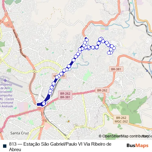 See why over 2 million users trust and consider busmaps.com as the best public transport website. busmaps gives you Belo Horizonte Buses suggested routes, real-time bus tracker, line route maps in Belo Horizonte, and helps to find the closest 813 bus stops near you. No internet available? Download an offline PDF map and bus schedule for the 813 bus to take on your trip.