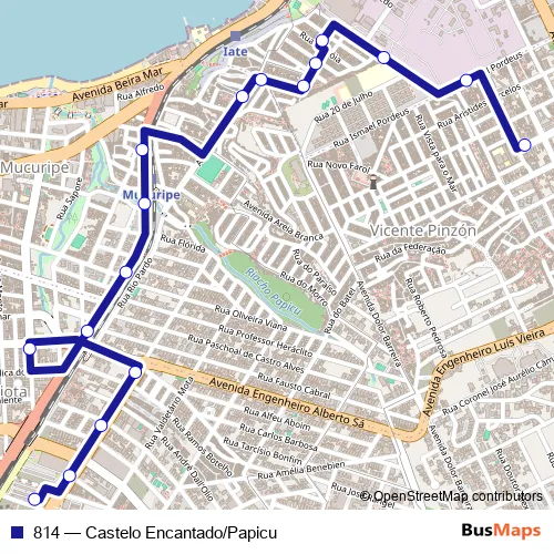 The first stop of the 814 bus route is Avenida PRO Murilo DA Silveira, 441 and the last stop is Praça Terminal Papicu, Sn. 814 (Castelo Encantado/Papicu) is operational during everyday.