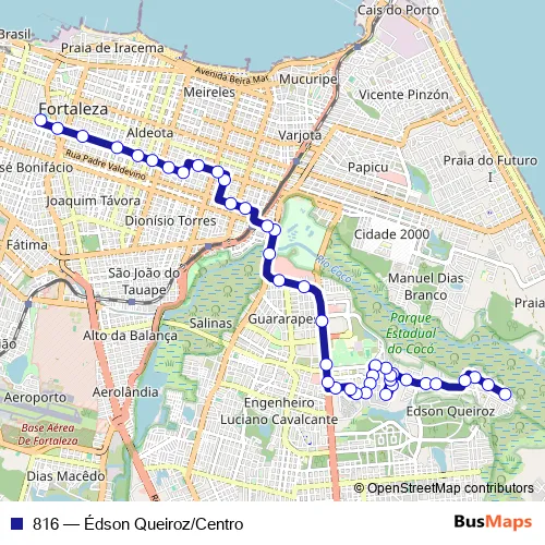 See why over 2 million users trust and consider busmaps.com as the best public transport website. busmaps gives you Fortaleza Buses suggested routes, real-time bus tracker, line route maps in Fortaleza, and helps to find the closest 816 bus stops near you. No internet available? Download an offline PDF map and bus schedule for the 816 bus to take on your trip.