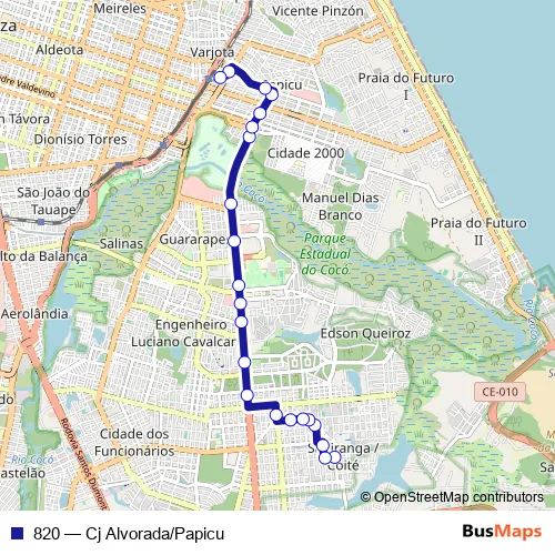 See why over 2 million users trust and consider busmaps.com as the best public transport website. busmaps gives you Fortaleza Buses suggested routes, real-time bus tracker, line route maps in Fortaleza, and helps to find the closest 820 bus stops near you. No internet available? Download an offline PDF map and bus schedule for the 820 bus to take on your trip.