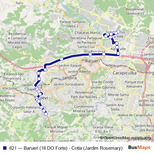 Click here to view the nearest 821 - Barueri (18 DO Forte) - Cotia (Jardim Rosemary) bus stop.