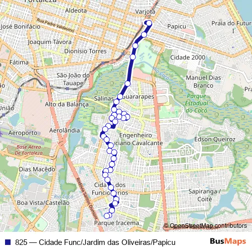 Bus 825 - Cidade Func/Jardim das Oliveiras/Papicu in Fortaleza: Stops & Timetable
