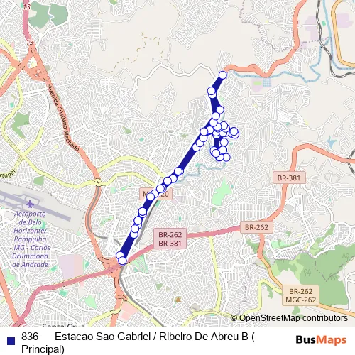 See why over 2 million users trust and consider busmaps.com as the best public transport website. busmaps gives you Belo Horizonte Buses suggested routes, real-time bus tracker, line route maps in Belo Horizonte, and helps to find the closest 836 bus stops near you. No internet available? Download an offline PDF map and bus schedule for the 836 bus to take on your trip.