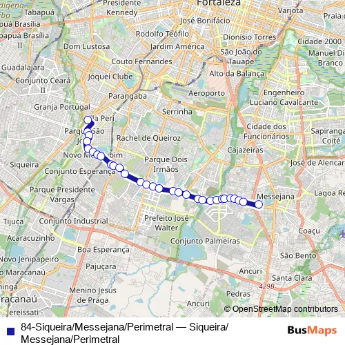 Additional information: 84-Siqueira/Messejana/Perimetral has 30 stops and the total trip duration for this route is approximately 57 minutes.