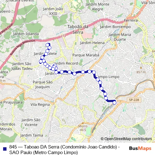 Click here to view the nearest 845 - Taboao DA Serra (Condominio Joao Candido) - SAO Paulo (Metro Campo Limpo) bus stop.