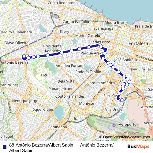 88-Antônio Bezerra/Albert Sabin bus Route Map