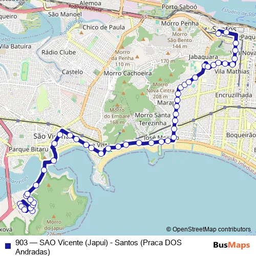 Click here to view the nearest 903 - SAO Vicente (Japui) - Santos (Praca DOS Andradas) bus stop.