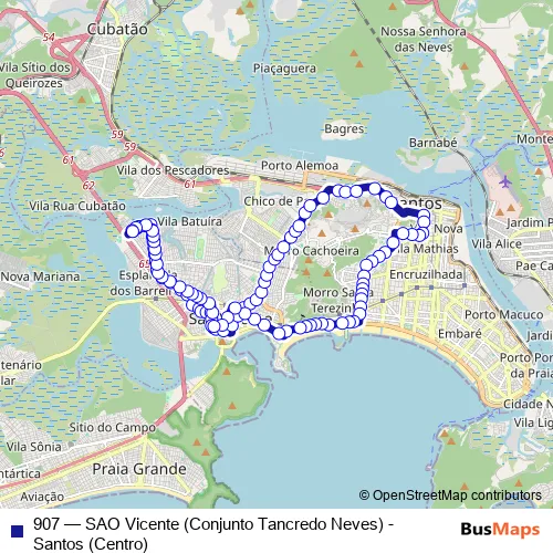 Click here to view the nearest 907 - SAO Vicente (Conjunto Tancredo Neves) - Santos (Centro) bus stop.
