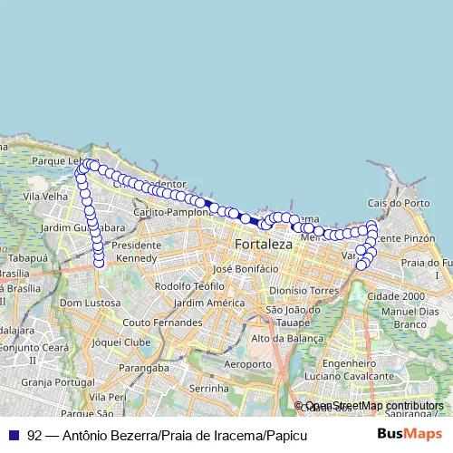 See why over 2 million users trust and consider busmaps.com as the best public transport website. busmaps gives you Fortaleza Buses suggested routes, real-time bus tracker, line route maps in Fortaleza, and helps to find the closest 92 bus stops near you. No internet available? Download an offline PDF map and bus schedule for the 92 bus to take on your trip.