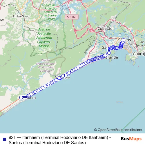 Bus 921 - Itanhaem (Terminal Rodoviario DE Itanhaem) - Santos (Terminal Rodoviario DE Santos): Full Schedule in Santos