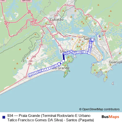 Click here to view the nearest 934 - Praia Grande (Terminal Rodoviario E Urbano Tatico Francisco Gomes DA Silva) - Santos (Paqueta) bus stop.