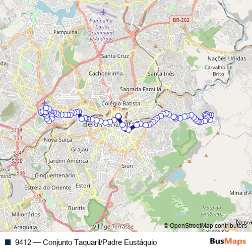 See why over 2 million users trust and consider busmaps.com as the best public transport website. busmaps gives you Belo Horizonte Buses suggested routes, real-time bus tracker, line route maps in Belo Horizonte, and helps to find the closest 9412 bus stops near you. No internet available? Download an offline PDF map and bus schedule for the 9412 bus to take on your trip.