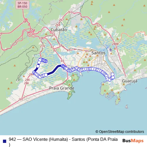 Click here to view the nearest 942 - SAO Vicente (Humaita) - Santos (Ponta DA Praia) bus stop.