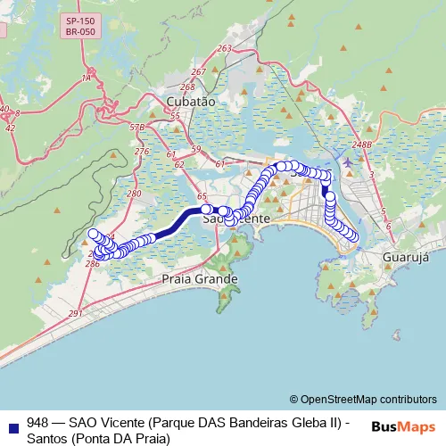 Click here to view the nearest 948 - SAO Vicente (Parque DAS Bandeiras Gleba II) - Santos (Ponta DA Praia) bus stop.