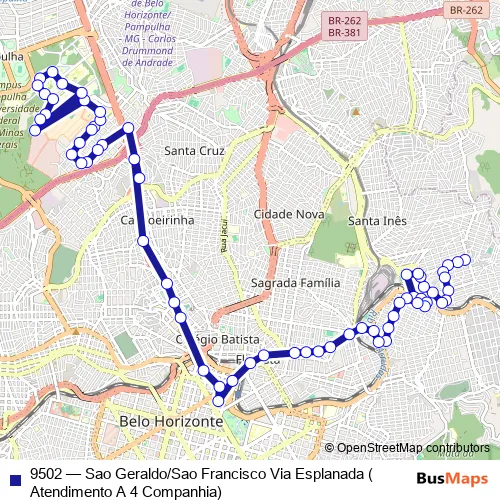 See why over 2 million users trust and consider busmaps.com as the best public transport website. busmaps gives you Belo Horizonte Buses suggested routes, real-time bus tracker, line route maps in Belo Horizonte, and helps to find the closest 9502 bus stops near you. No internet available? Download an offline PDF map and bus schedule for the 9502 bus to take on your trip.
