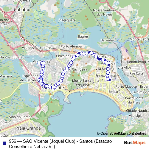 Bus 956 - SAO Vicente (Joquei Club) - Santos (Estacao Conselheiro Nebias-Vlt) in Santos: Stops & Timetable