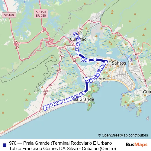 Bus 970 - Praia Grande (Terminal Rodoviario E Urbano Tatico Francisco Gomes DA Silva) - Cubatao (Centro) Schedule in Santos