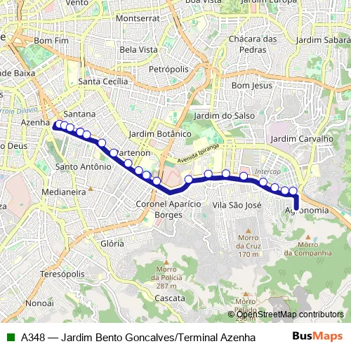 Click here to view the nearest A348 - Jardim Bento Goncalves/Terminal Azenha bus stop.