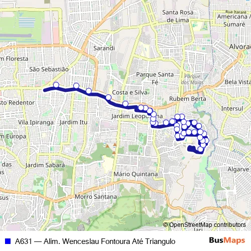 Bus A631 - Alim. Wenceslau Fontoura Até Triangulo in Alvorada: Stops & Timetable