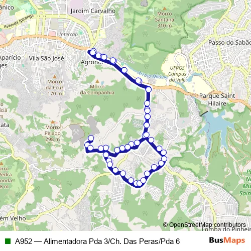 Bus A952 - Alimentadora Pda 3/Ch. Das Peras/Pda 6 Schedule in Porto Alegre