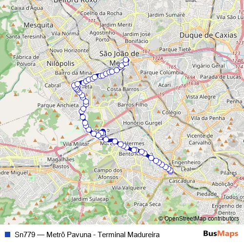 Click here to view the nearest Sn779 - Metrô Pavuna - Terminal Madureira bus stop.