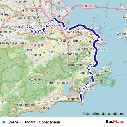 Bus Sv474 - Jacaré - Copacabana in Rio de Janeiro: Stops & Timetable
