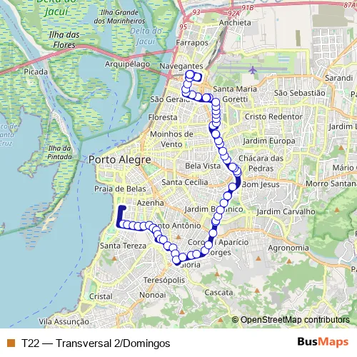 See why over 2 million users trust and consider busmaps.com as the best public transport website. busmaps gives you Porto Alegre Buses suggested routes, real-time bus tracker, line route maps in Porto Alegre, and helps to find the closest T22 bus stops near you. No internet available? Download an offline PDF map and bus schedule for the T22 bus to take on your trip.