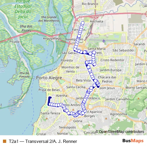 Bus T2a1 - Transversal 2/A. J. Renner in Porto Alegre: Stops & Timetable