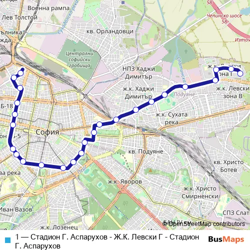 See why over 2 million users trust and consider busmaps.com as the best public transport website. busmaps gives you Sofia Trolleybuses suggested routes, real-time bus tracker, line route maps in Sofia, and helps to find the closest 1 trolleybus stops near you. No internet available? Download an offline PDF map and bus schedule for the 1 trolleybus to take on your trip.