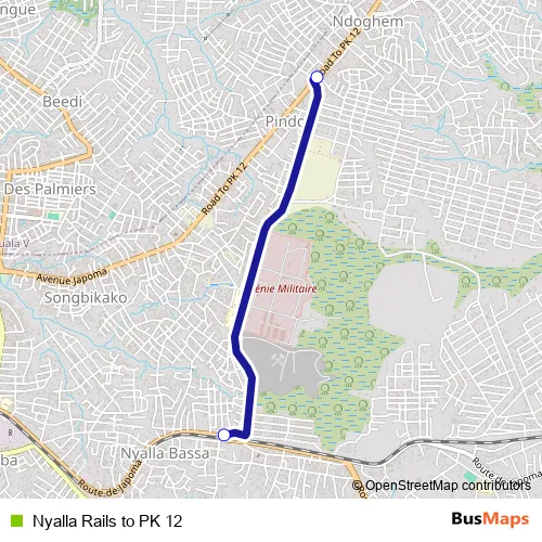 See why over 2 million users trust and consider busmaps.com as the best public transport website. busmaps gives you Douala Buses suggested routes, real-time bus tracker, line route maps in Douala, and helps to find the closest Nyalla Rails to PK 12 bus stops near you. No internet available? Download an offline PDF map and bus schedule for the Nyalla Rails to PK 12 bus to take on your trip.