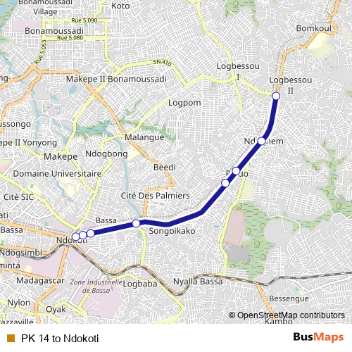 See why over 2 million users trust and consider busmaps.com as the best public transport website. busmaps gives you Douala Buses suggested routes, real-time bus tracker, line route maps in Douala, and helps to find the closest PK 14 to Ndokoti bus stops near you. No internet available? Download an offline PDF map and bus schedule for the PK 14 to Ndokoti bus to take on your trip.