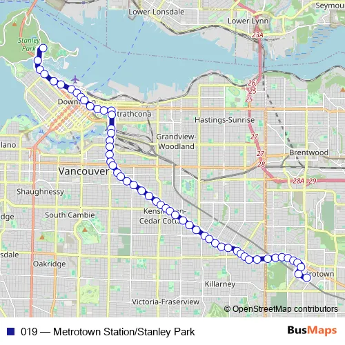 Bus 019 - Metrotown Station/Stanley Park: Full Schedule in Burnaby