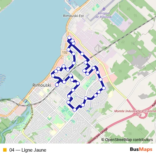 See why over 2 million users trust and consider busmaps.com as the best public transport website. busmaps gives you Rimouski Buses suggested routes, real-time bus tracker, line route maps in Rimouski, and helps to find the closest 04 bus stops near you. No internet available? Download an offline PDF map and bus schedule for the 04 bus to take on your trip.