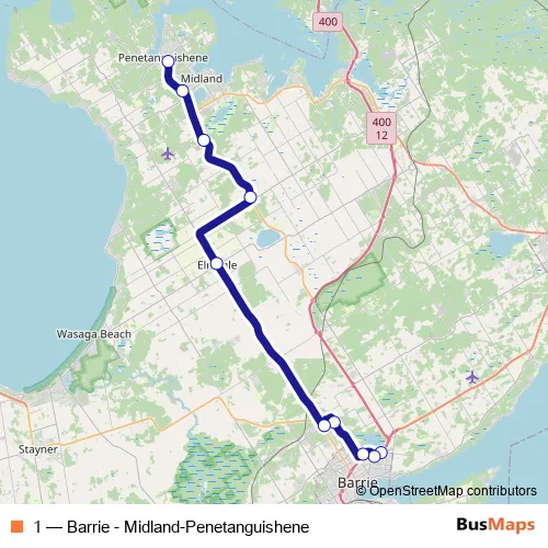 See why over 2 million users trust and consider busmaps.com as the best public transport website. busmaps gives you Barrie Buses suggested routes, real-time bus tracker, line route maps in Barrie, and helps to find the closest 1 bus stops near you. No internet available? Download an offline PDF map and bus schedule for the 1 bus to take on your trip.