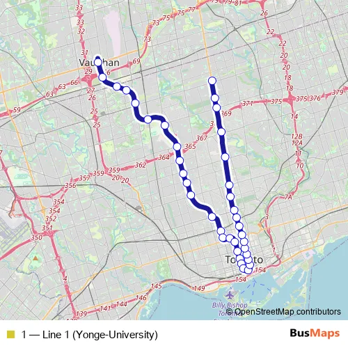 See why over 2 million users trust and consider busmaps.com as the best public transport website. busmaps gives you Toronto Metro Lines suggested routes, real-time bus tracker, line route maps in Toronto, and helps to find the closest 1 metro stops near you. No internet available? Download an offline PDF map and bus schedule for the 1 metro to take on your trip.