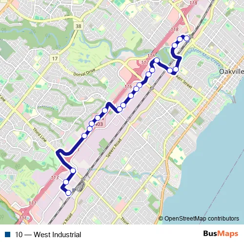 The first stop of the 10 bus route is Oakville GO Station and the last stop is Bronte GO Station. 10 (West Industrial) is operational during on weekdays.