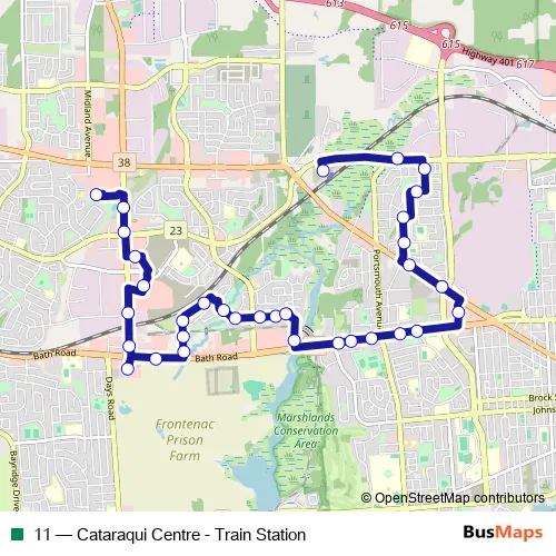 The first stop of the 11 bus route is Cataraqui Centre and the last stop is VIA Rail Station. 11 (Cataraqui Centre - Train Station) is operational during everyday.