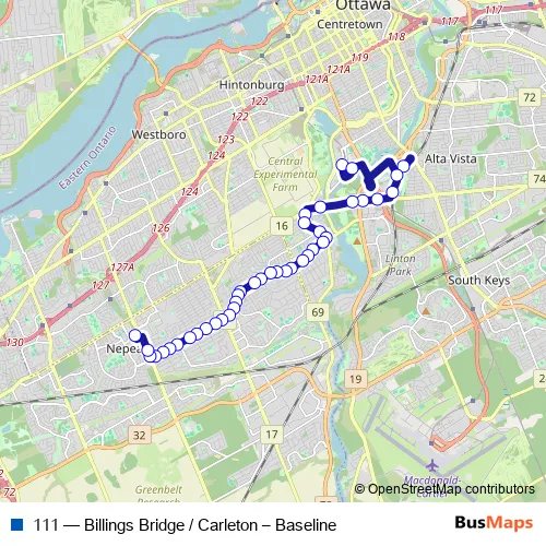 The first stop of the 111 bus route is Billings Bridge 3b and the last stop is Baseline 2a. 111 (Billings Bridge / Carleton – Baseline) is operational during everyday.