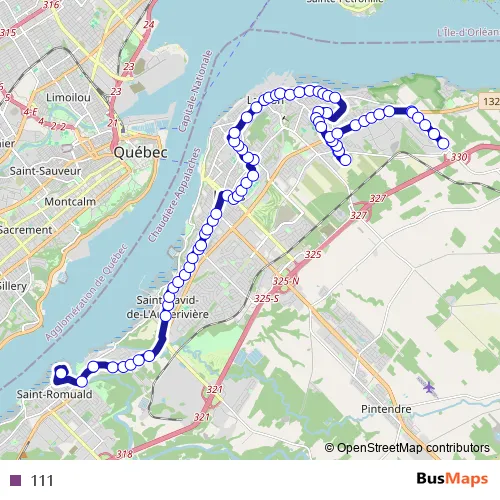 See why over 2 million users trust and consider busmaps.com as the best public transport website. busmaps gives you Quebec Buses suggested routes, real-time bus tracker, line route maps in Quebec, and helps to find the closest 111 bus stops near you. No internet available? Download an offline PDF map and bus schedule for the 111 bus to take on your trip.